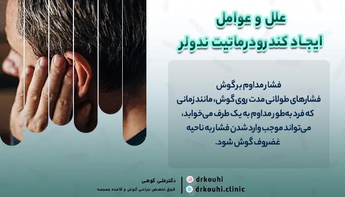 از دیگر عوامل مؤثر میتوان به آسیبهای مکرر، سرما و باد مستقیم، استفاده از هدفون یا سمعک نامناسب، و حتی اختلالات عروقی اشاره کرد. این مشکل بیشتر در مردان مسن دیده میشود و معمولاً به صورت یک برجستگی دردناک روی لبه بالایی گوش ظاهر میشود.